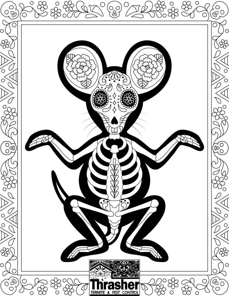 Click the link above to download a pdf of the rat Dia de Los Muertos coloring page, or open the image below in a new tab for a full-size jpeg coloring page of the rat (or is it a creepy mouse? you decide). Please share your colorful results with us.
