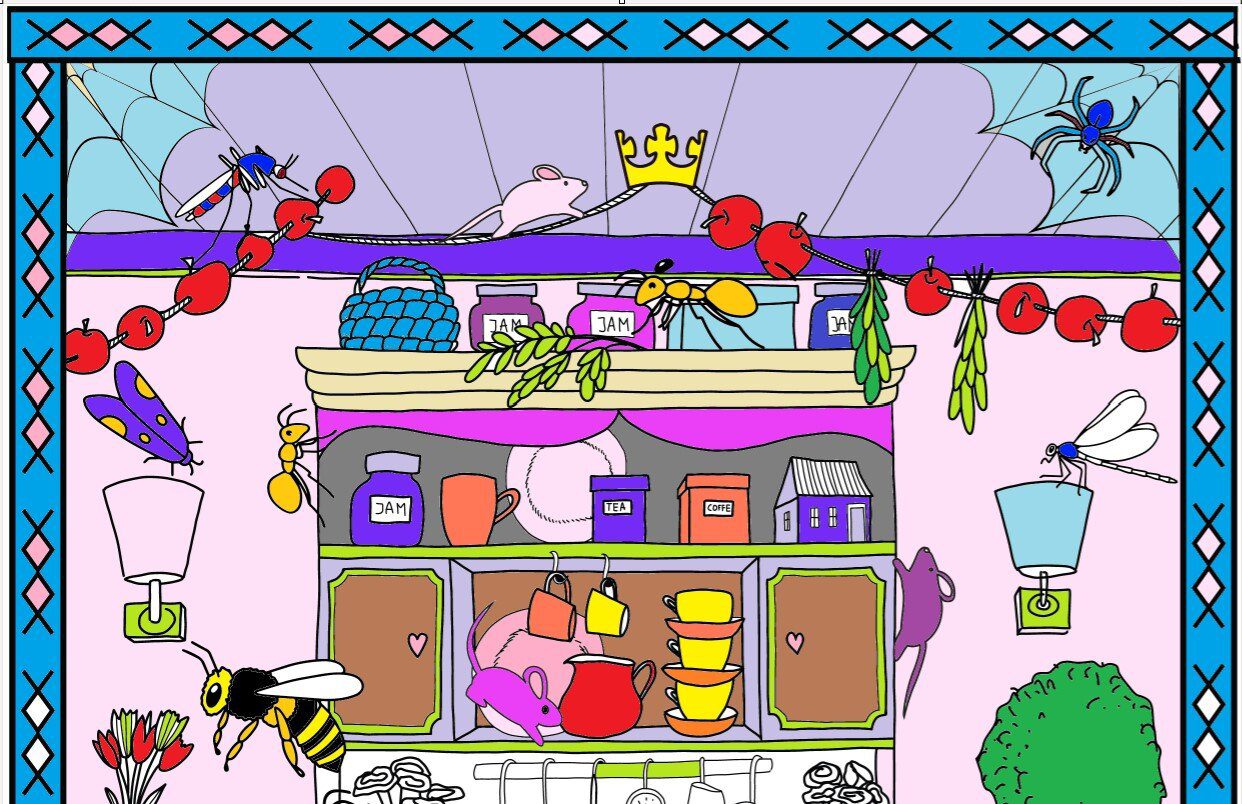 This delightful and engaging free coloring page is an ideal activity for both adults and children. It showcases a whimsical witches’ country kitchen overrun with a delightful assortment of tiny critters, bringing life and activity to every corner. Among these charming inhabitants, you’ll find bustling ants marching diligently in a line, scurrying mice in the pantry, buzzing bees, and creeping spiders weaving their intricate webs. The scene is not just a pretty picture but also a clever puzzle, skillfully designed to engage your mind and challenge your observational skills. It invites you to spot and discover all the cleverly hidden insects that are artfully concealed within the intricate design. Enjoy this free coloring page from Thrasher Pest. Remember, if you have ant or mice in YOUR kitchen, magic won’t make them disappear, but Thrasher Pest will!